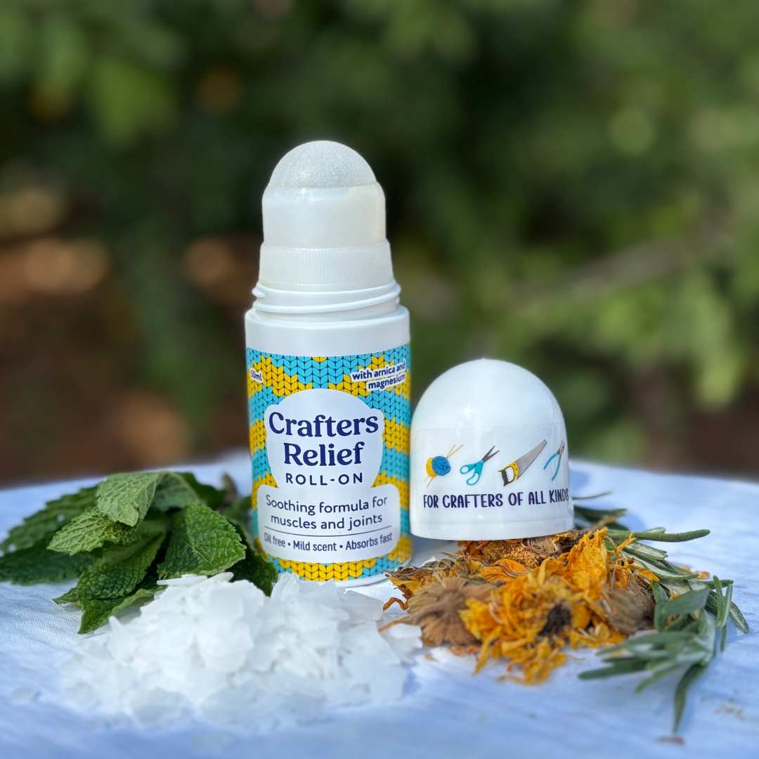Our proprietary formula, developed specifically for crafters combines a power house of ingredients such as arnica, magnesium, MSM and healing essential oils to provide instant, targeted relief for joints, muscles, and tendons strained by repetitive motion. Harnessing the power of nature, Crafters Relief Roll-On can be used as often as needed without any side effects.
